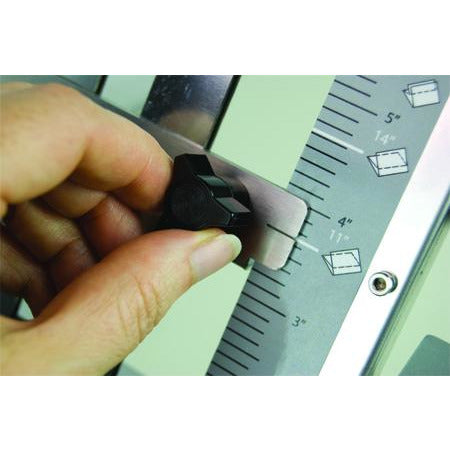 The FD 314 Office Desktop Folder provides an economical solution for low-volume folding projects. It combines a compact footprint with push-button controls, so it's simple to use, right out of the box! Fold plates are clearly marked for four common folds - letter, zig-zag, half and double parallel - and can be easily adjusted for custom folds. With a three-tire drop-in feed system, it processes 11” and 14” paper at speeds up to 7,700 sheets per hour, and offers a hopper capacity of up to 250 sheets.