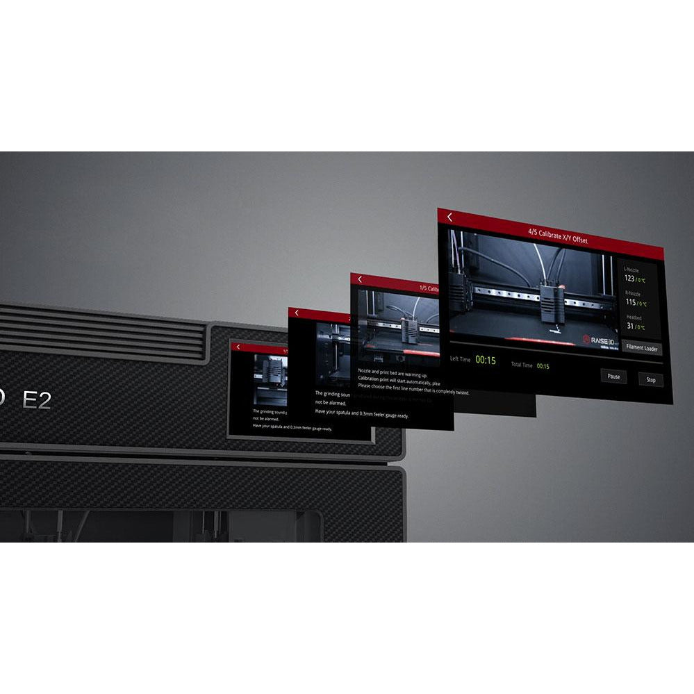 The E2 features a camera to monitor the entire 3D printing process of every print job. This camera operates by connecting to RaiseCloud allowing users to keep track of every print job remotely. The ability to check the 3D printing process gives peace of mind.