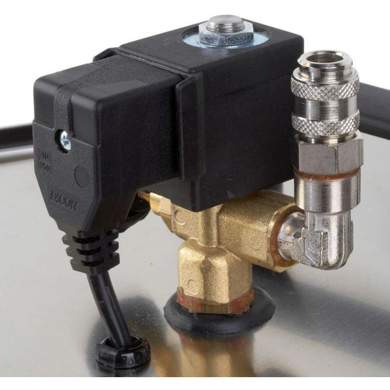 The 8000CD is equipped with an external solenoid for complete steam control. The solenoid allows the user to manually adjust steam output for complete steam control. The quick release fitting allows for easy removal and connecting of a wide variety of accessories.