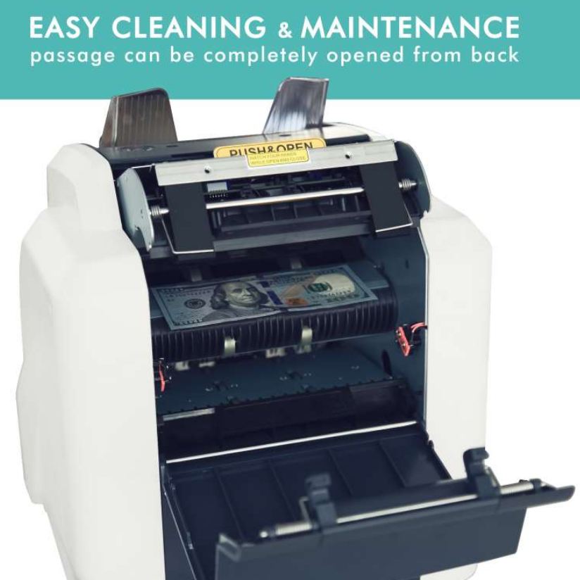 There is a easy to open passage on the rear side in order to clear out jammed notes and clean the sensors.